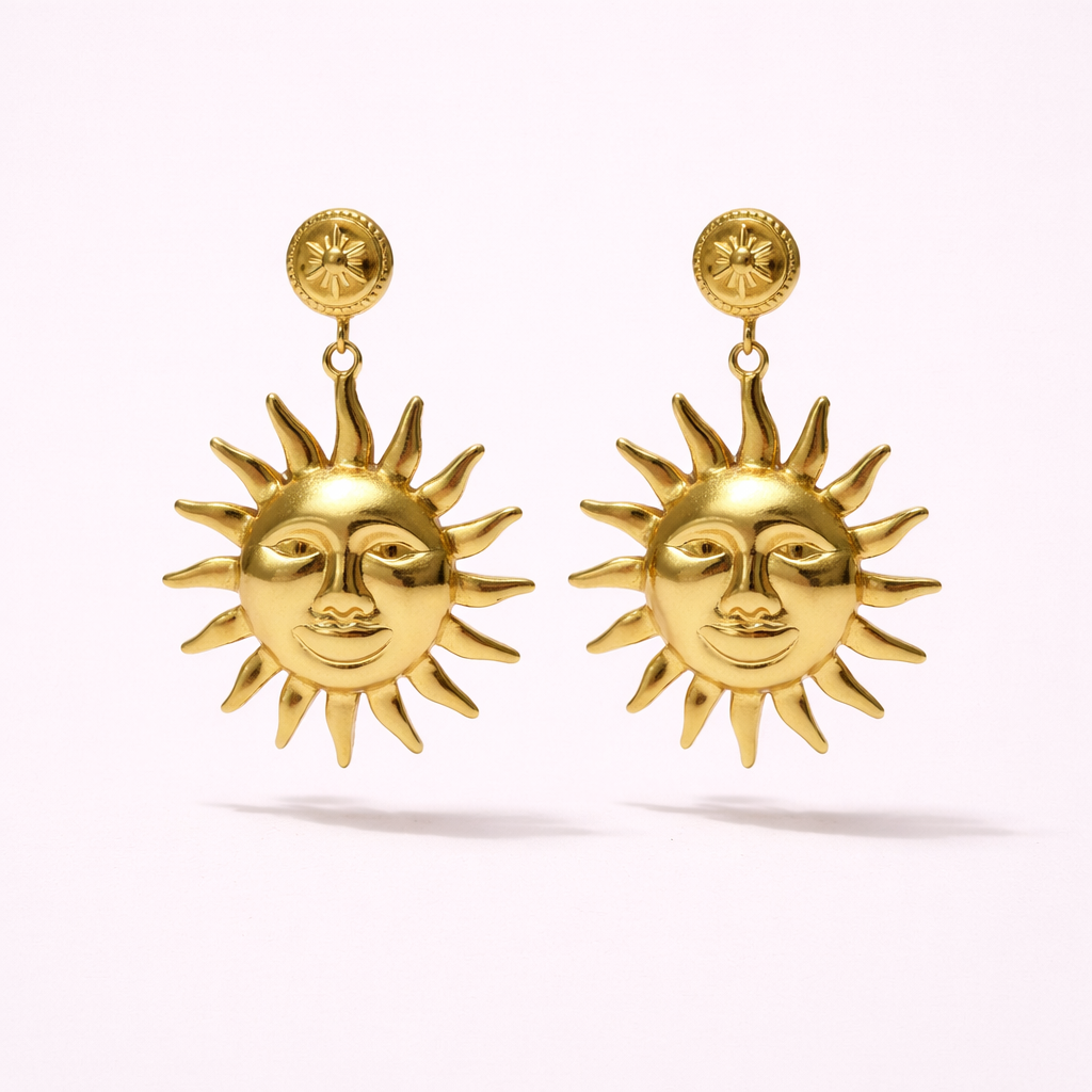 Un bijou qui ne passe pas inaperçu. Avec leur design soleil visage, ces boucles d’oreilles apportent une touche artistique et solaire à votre style. Une pièce forte, parfaite pour illuminer votre look.