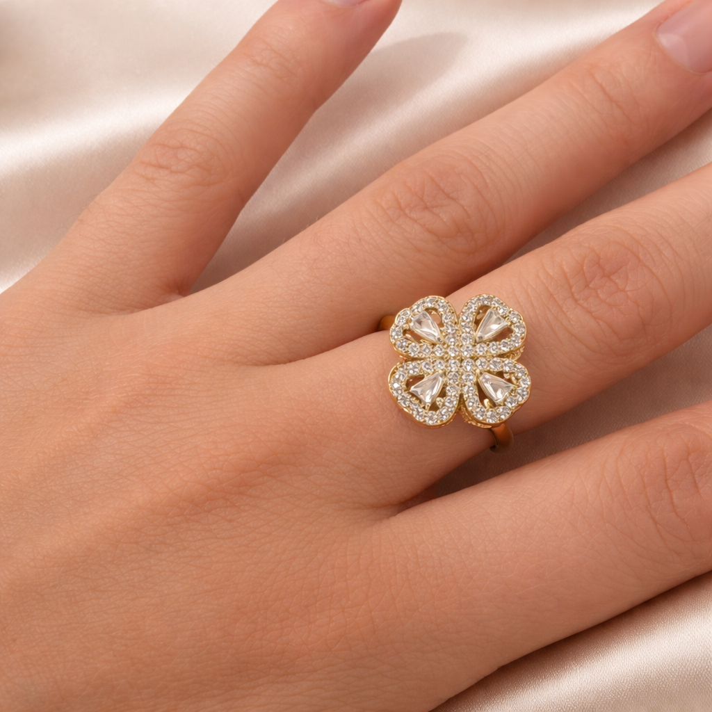 Élégante et apaisante, la bague anti-stress Élina allie raffinement et bien-être. Son design en forme de fleur scintillante capte la lumière tout en offrant une fonction relaxante discrète au quotidien.