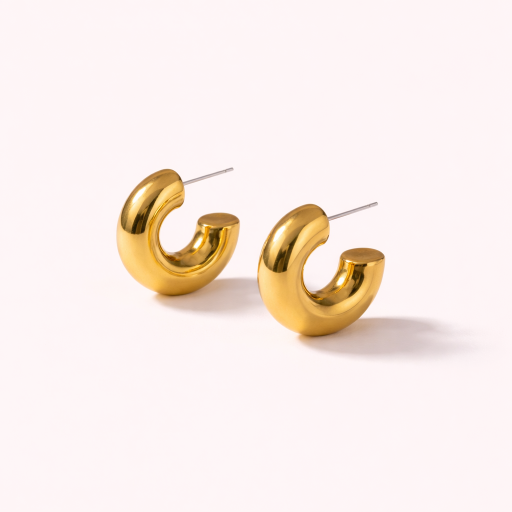 Modernes et intemporelles, les boucles Créoles se distinguent par leur forme épaisse et arrondie, apportant une touche de caractère tout en restant élégantes. Leur design lisse et structuré capte la lumière avec subtilité pour un rendu chic et minimaliste.