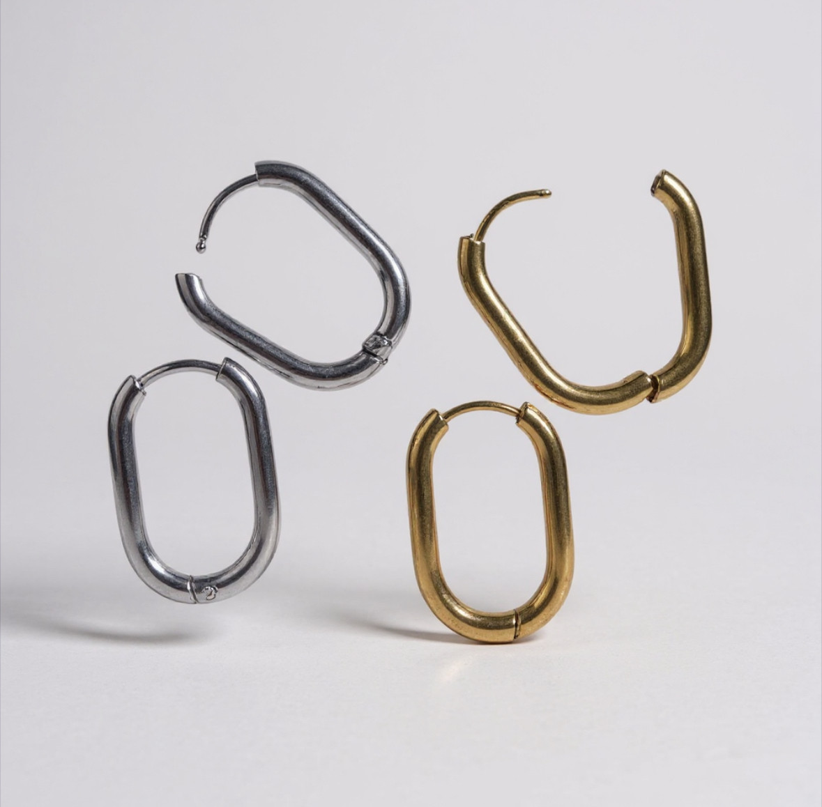 Modernes et minimalistes, ces créoles rectangulaires dorées apportent une touche élégante et tendance à vos tenues. Leur forme géométrique épurée se distingue des créoles classiques, offrant un style affirmé tout en restant facile à porter au quotidien. Conçues en acier inoxydable doré, elles allient légèreté, confort et résistance.