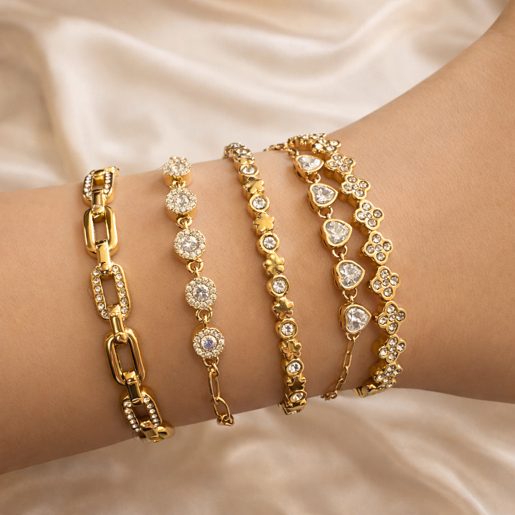 Composé de petits cœurs finement sertis de zircons scintillants, il capte la lumière à chaque mouvement et symbolise douceur, amour et féminité.