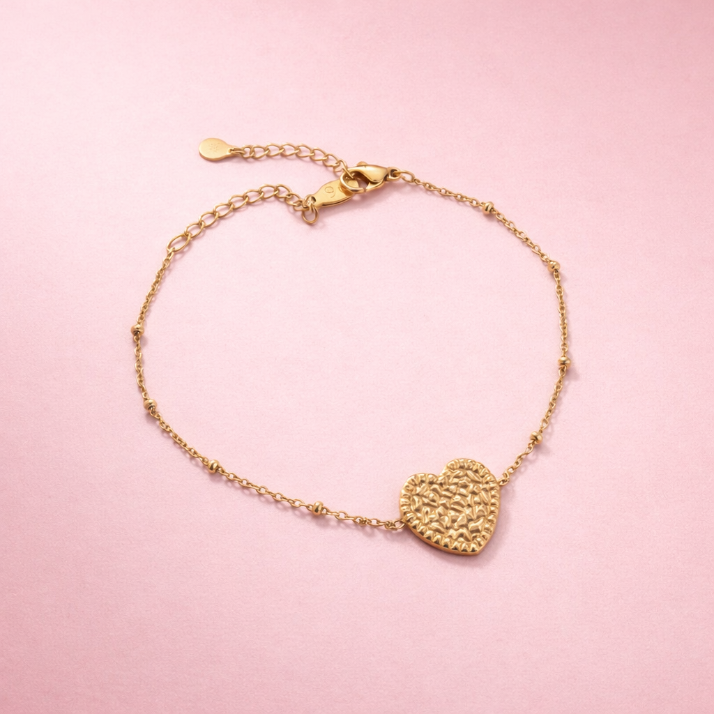 Son pendentif cœur au relief martelé capte la lumière et apporte du caractère à ce bijou minimaliste.