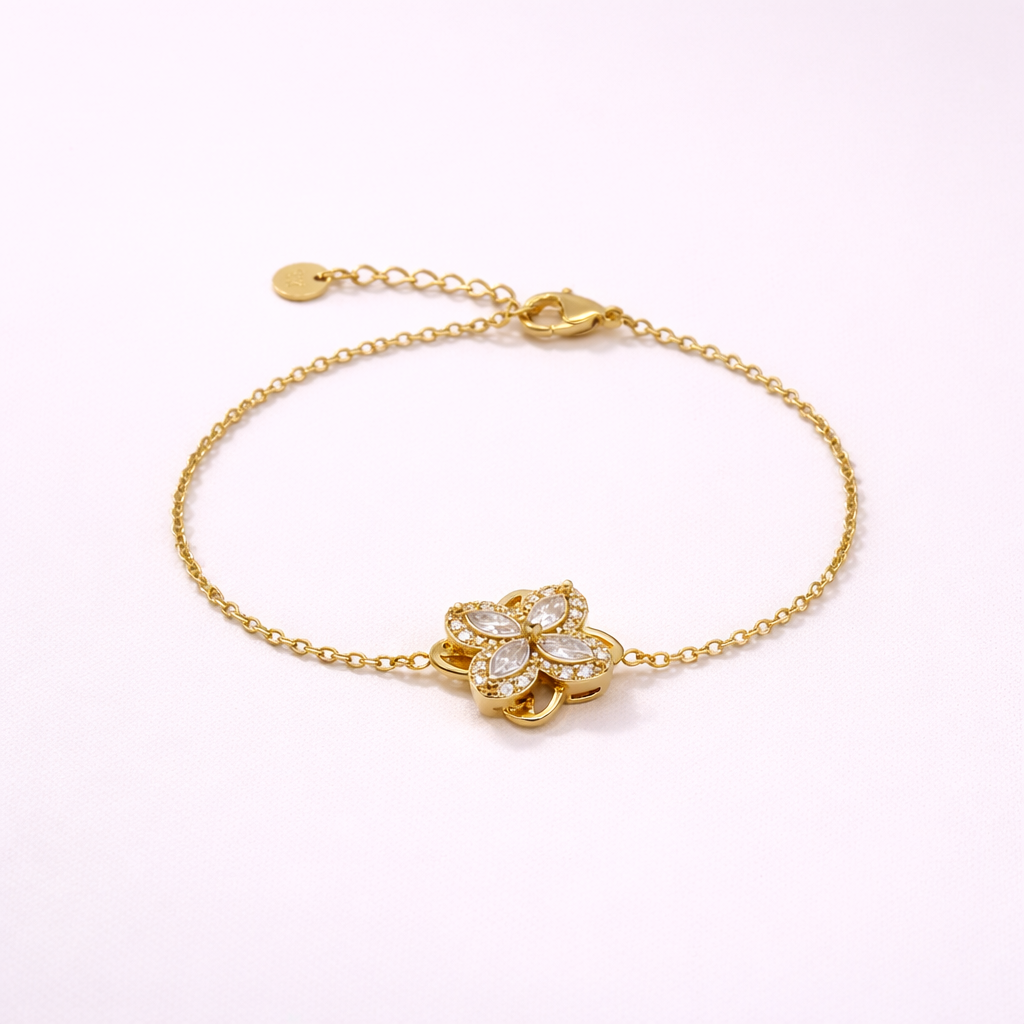Délicat et raffiné, ce bracelet anti stress se distingue par sa fleur centrale élégante qui tourne subtilement sur elle-même. Un bijou à la fois apaisant et féminin, idéal pour ajouter une touche de douceur à votre quotidien tout en gardant un style chic et minimaliste.