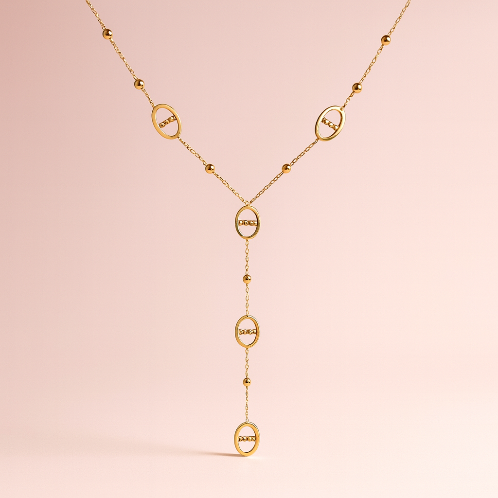 Léger, fluide et élégant, ce collier long met en valeur la silhouette avec une chute délicate en forme de “Y”. Ses maillons ovales façon maille marine ajourée, associés à de petits inserts en acier blanc, créent un équilibre parfait entre finesse et caractère. Un bijou moderne, chic, facile à porter au quotidien comme en soirée.