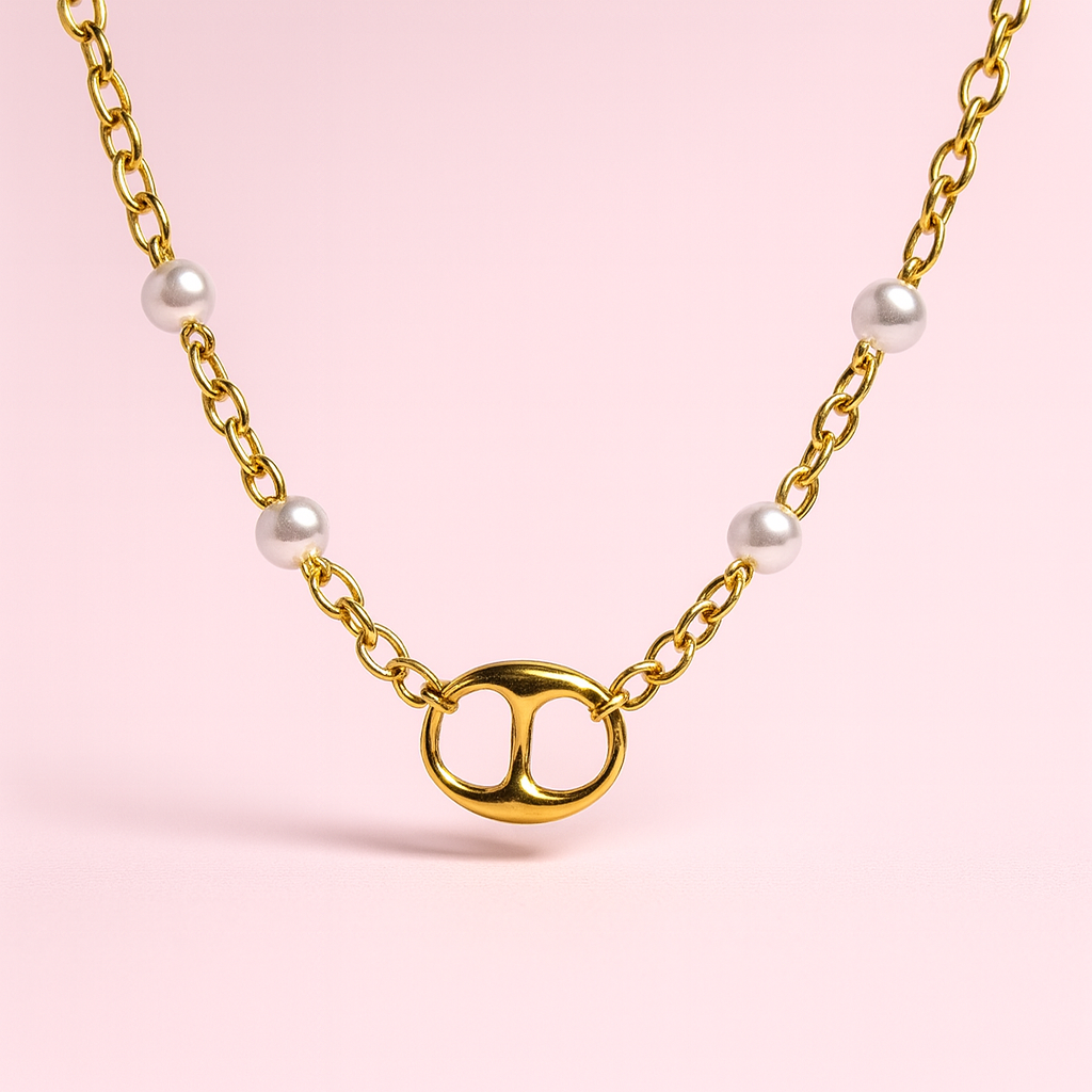 Comme une douce vague dorée qui enlace la peau, ce collier mêle la finesse de la maille marine à l’éclat délicat des petites perles blanches. Un bijou lumineux, féminin et intemporel, pensé pour apporter une touche chic à chaque tenue — du quotidien aux moments les plus précieux.