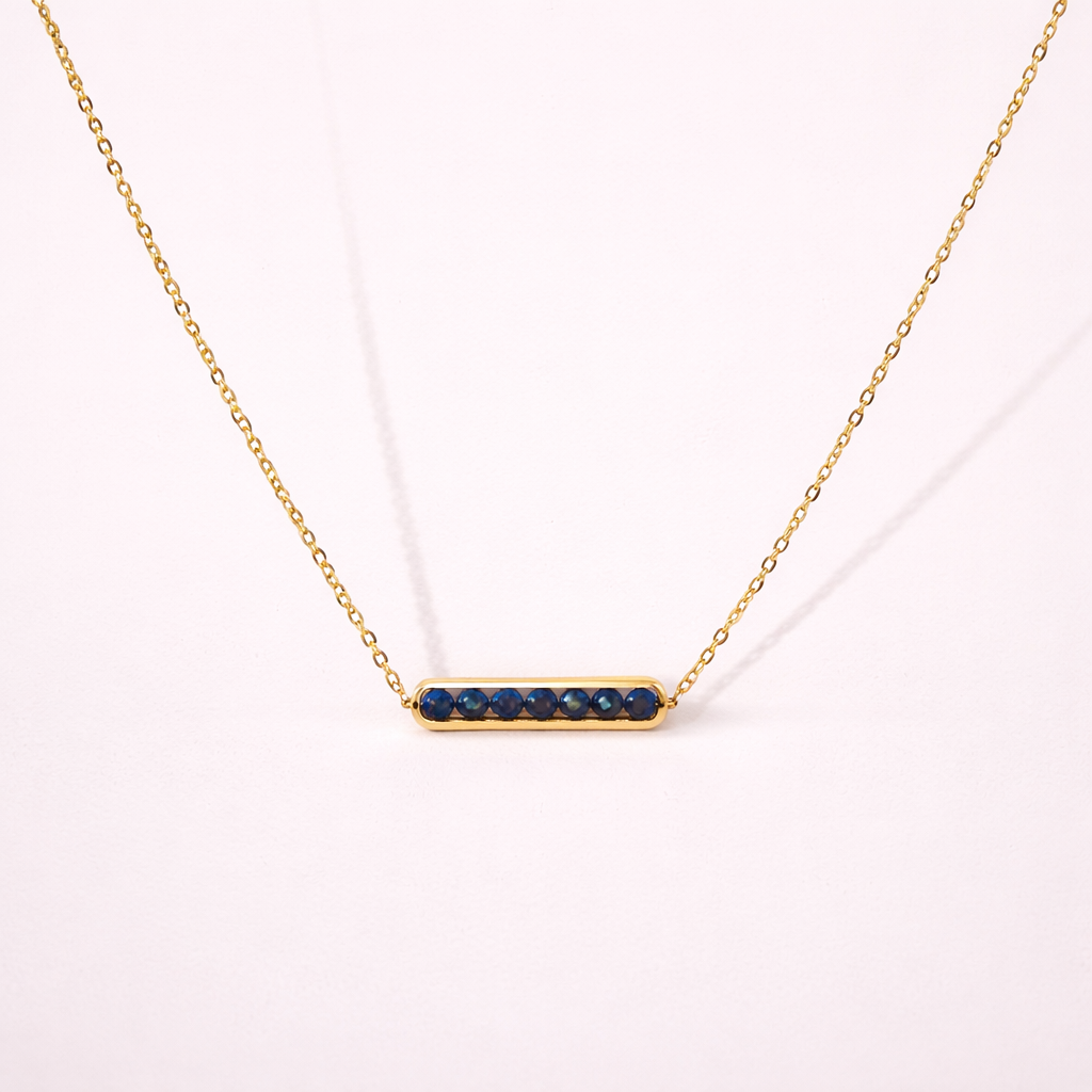 Minimaliste et raffiné, le collier Louise met en valeur une fine rangée de spinelles noires dans un serti doré. Un bijou élégant et intemporel, parfait à porter seul ou assorti au bracelet du même nom.