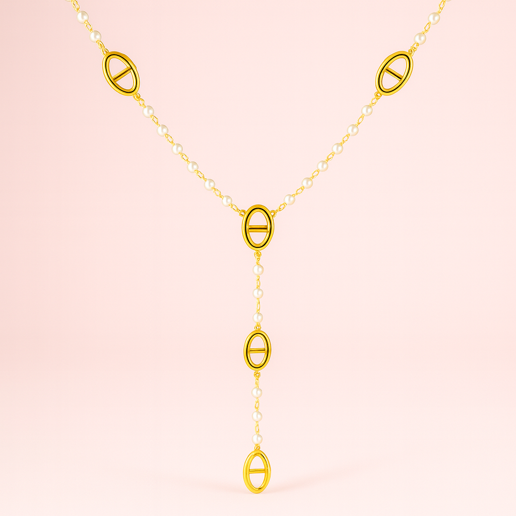 Un collier long au style intemporel, sublimé par des mailles ovales façon marine qui se répètent en cascade. Sa chaîne perlée délicate en acier inoxydable doré apporte une touche élégante et raffinée. Porté seul ou superposé avec d’autres bijoux, ce sautoir est une pièce incontournable pour un look chic et moderne.