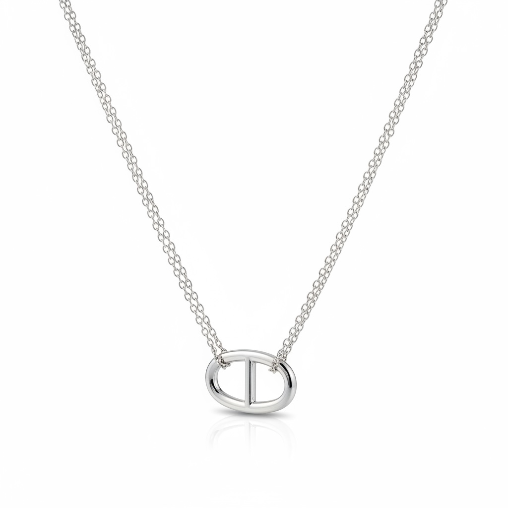 Conçu en acier inoxydable de haute qualité, ce collier se distingue par son pendentif maille marine ovale, aux lignes douces et structurées. Il est monté sur une chaîne fine doublée, offrant un rendu équilibré et élégant.